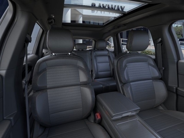 This vehicle comes equped with the following features and options : Equipment Group 203A Reserve III (110V Power Converter, Auto Air Refresh, BlueCruise Equipped (4-Years Included), Digital Scent, Hands-Free Power Liftgate, Lincoln Rejuventate, Panoramic Vista Roof w/Powershade, Premium Leather-Trimmed Heat/Vent Captain's Chairs, Radio: AM/FM Revel Ultima 3D Audio System, and Rear Heated Seats w/Switch Control), Jet Appearance Package (Black Exterior Elements, Body Color, and Wheels: 22" Satin Dark Luster Aluminum), 10 Speakers Satellite Radio Ready, 4-Wheel Disc Brakes, ABS brakes, Adaptive suspension, Air Conditioning, Alloy wheels, AM/FM radio: SiriusXM with 360L, Apple CarPlay/Android Auto, Auto High-beam Headlights, Auto tilt-away steering wheel, Auto-dimming Rear-View mirror, Automatic temperature control, Brake assist with Blind Spot Monitor and Lane Assist, Bumpers: body-color, Compass, Delay-off headlights with Perimeter Approach Lights, Driver door bin, Driver vanity mirror, Dual front impact airbags, Dual front side impact airbags, Electronic Stability Control, Emergency Communication system: 911 Assist, Exterior Parking Rearview Camera, Four wheel independent suspension, Front anti-roll bar Forward Collision Warning, Front Bucket Seats, Front Center Armrest w/Storage, Front dual zone A/C, Front reading lights, Fully automatic headlights, Garage door transmitter: HomeLink, Heated door mirrors, Heated Seats, Heated steering wheel, Illuminated entry, Knee airbag, Leather steering wheel, Lincoln Digital Experience, Low tire pressure warning, Memory seat, Navigation System, Occupant sensing airbag, Outside temperature display, Overhead airbag, Overhead console, Panic alarm, Passenger door bin, Passenger vanity mirror, Power door mirrors, Power driver seat, Power Hands Free Liftgate, Power passenger seat, Power steering, Power windows, Prem Lthr-Trimmed Htd/Ventilated Captain's Chairs, Premium Lthr Trimmed Front Captains Chairs, Radio data system Apple Car Play and Android Auto, Radio: AM/FM Revel Audio System, Rain sensing wipers, Rear anti-roll bar, Rear reading lights, Rear seat center armrest, Rear window defroster, Rear window wiper, Remote keyless entry with Push Button Starting, Security system, SiriusXM w/360L, Speed control, Speed-sensing steering, Speed-Sensitive Wipers, Split folding rear seat, Spoiler, Steering wheel memory with Steering Wheel Controls, Steering wheel mounted audio controls, Tachometer, Telescoping steering wheel, Tilt steering wheel, Traction control, Trip computer, Turn signal indicator mirrors, Variably intermittent wipers, and Wheels: 21" Bright Machined Aluminum.