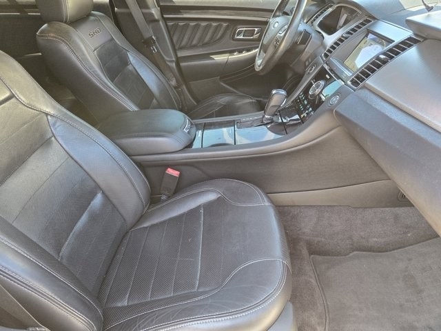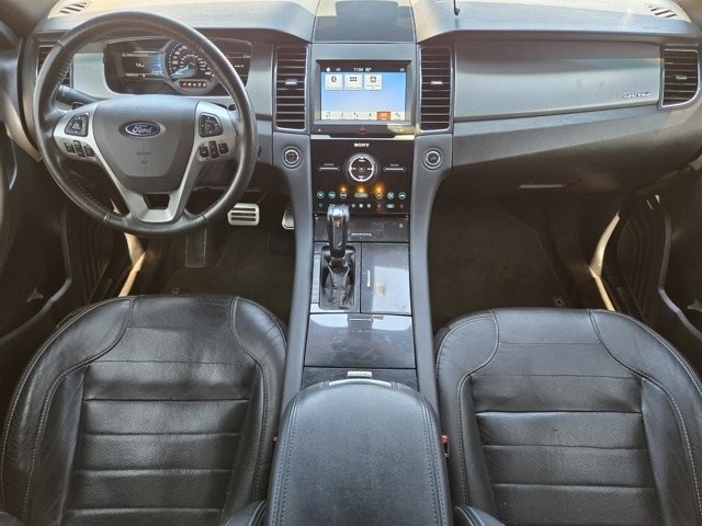 Taurus SHO AWD, Multi-zone Climate Control, Steering Wheel Controls, Backup Camera, Cruise Control, Keyless Entry, Power Locks, Power Windows, Heated Seats, Heated and Cooled Seats, Leather Seats, Sunroof / Moonroof, AWD, 12 Speakers, 4-Wheel Disc Brakes, ABS brakes, Additional IP Center Channel Speakers, Adjustable pedals, Air Conditioning, All-Weather Floor Mats (Dealer Installed), Alloy wheels, AM/FM radio: SiriusXM, AppLink/Apple CarPlay and Android Auto, Auto High-beam Headlights, Auto tilt-away steering wheel, Auto-dimming door mirrors, Auto-dimming Rear-View mirror, Automatic temperature control, Brake assist, Bumpers: body-color, CD player, Compass, Delay-off headlights, Driver door bin, Driver vanity mirror, Dual front impact airbags, Dual front side impact airbags, Electronic Stability Control, Emergency communication system: SYNC 3 911 Assist, Equipment Group 401A, Exterior Parking Camera Rear, Four wheel independent suspension, Front anti-roll bar, Front Bucket Seats, Front Center Armrest, Front dual zone A/C, Front reading lights, Fully automatic headlights, Garage door transmitter: HomeLink, HD Radio, Heated & Cooled Leather Trimmed Bucket Seats, Heated door mirrors, Heated front seats, Heated rear seats, Heated steering wheel, High-Intensity Discharge Headlights, Illuminated entry, Knee airbag, Low tire pressure warning, Memory seat, Occupant sensing airbag, Outside temperature display, Overhead airbag, Overhead console, Panic alarm, Passenger door bin, Passenger vanity mirror, Pedal memory, Power door mirrors, Power driver seat, Power Moonroof, Power passenger seat, Power steering, Power windows, Radio data system, Radio: AM/FM Stereo/Single-CD/MP3 Capable, Rain sensing wipers, Rear anti-roll bar, Rear Parking Sensors, Rear reading lights, Rear seat center armrest, Rear Window Blind, Rear window defroster, Remote keyless entry, Security system, SiriusXM Radio, Speed control, Speed-sensing steering, Speed-Sensitive Wipers, Split folding rear seat, Spoiler, Steering wheel memory, Steering wheel mounted audio controls, SYNC 3 Communications & Entertainment System, Tachometer, Telescoping steering wheel, Tilt steering wheel, Traction control, Trip computer, Variably intermittent wipers, Ventilated front seats, Wheels: 20" Ebony Black-Painted Machined Aluminum.