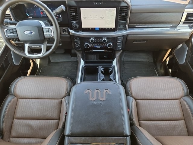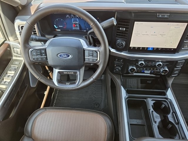 F-250SD King Ranch 4WD, Multi-zone Climate Control, Steering Wheel Controls, Backup Camera, Cruise Control, Keyless Entry, Power Locks, Power Windows, Heated Seats, Heated and Cooled Seats, Leather Seats, 4WD, 14 Speakers, 3.73 Axle Ratio, 4-Wheel Disc Brakes, 410 Amp Dual Alternators, ABS brakes, Adjustable pedals, Air Conditioning, Alloy wheels, AM/FM radio: SiriusXM with 360L, Auto High-beam Headlights, Auto tilt-away steering wheel, Auto-dimming Rear-View mirror, Automatic temperature control, Brake assist, Compass, Delay-off headlights, Driver door bin, Driver vanity mirror, Dual front impact airbags, Dual front side impact airbags, Electronic Stability Control, Emergency communication system: SYNC 4 911 Assist, Engine Block Heater, F-250 >10K GVWR Package, Flow-Through Console, Front anti-roll bar, Front Bucket Seats, Front Center Armrest, Front dual zone A/C, Front fog lights, Front License Plate Bracket, Front reading lights, Fully automatic headlights, FX4 Off-Road Package, Garage door transmitter, Heads-Up Display, Heated door mirrors, Heated front seats, Heated rear seats, Heated steering wheel, High Capacity 11.6" Axle Upgrade Package, Hill Descent Control, Illuminated entry, Leather steering wheel, Low tire pressure warning, Memory seat, Navigation System, Off-Road Specifically Tuned Shock Absorbers, Order Code 700A, Outside temperature display, Overhead airbag, Overhead console, Panic alarm, Passenger door bin, Passenger vanity mirror, Pedal memory, Power door mirrors, Power driver seat, Power passenger seat, Power steering, Power windows, Radio: B&O Unleashed Sound System by Bang & Olufsen, Rain sensing wipers, Rear reading lights, Rear seat center armrest, Rear step bumper, Rear window defroster, Remote keyless entry, Security system, SiriusXM Radio w/360L, Speed control, Split folding rear seat, Steering wheel memory, Steering wheel mounted A/C controls, Steering wheel mounted audio controls, SYNC 4 w/Enhanced Voice Recognition, Tachometer, Telescoping steering wheel, Tilt steering wheel, Traction control, Trip computer, Turn signal indicator mirrors, Twin Panel Power Moonroof, Unique FX4 Off-Road Box Decal, Unique King Ranch Leather 40/Console/40 Seats, Upfitter Switches (6), Variably intermittent wipers, Ventilated front seats, Wheels: 20" Bright Machined Cast Aluminum.