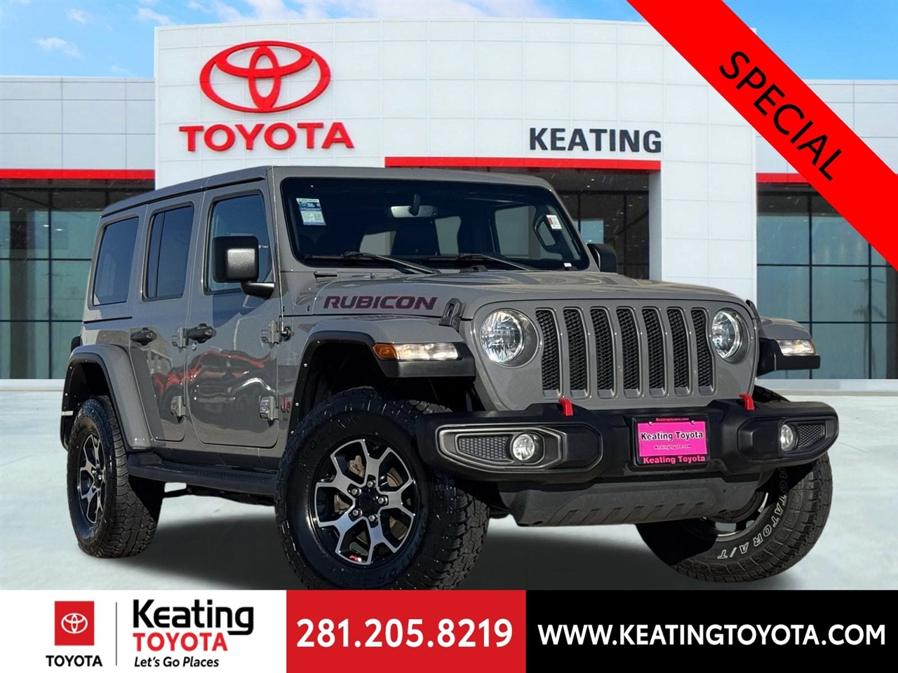 The Jeep Wrangler Unlimited Rubicon is built for adventure, delivering unmatched off-road performance while offering comfort and technology for daily driving. Visit Keating Toyota in Manvel, TX today and take this rugged SUV for a test drive—you’ll see why it’s the ultimate choice for drivers seeking capability and confidence.