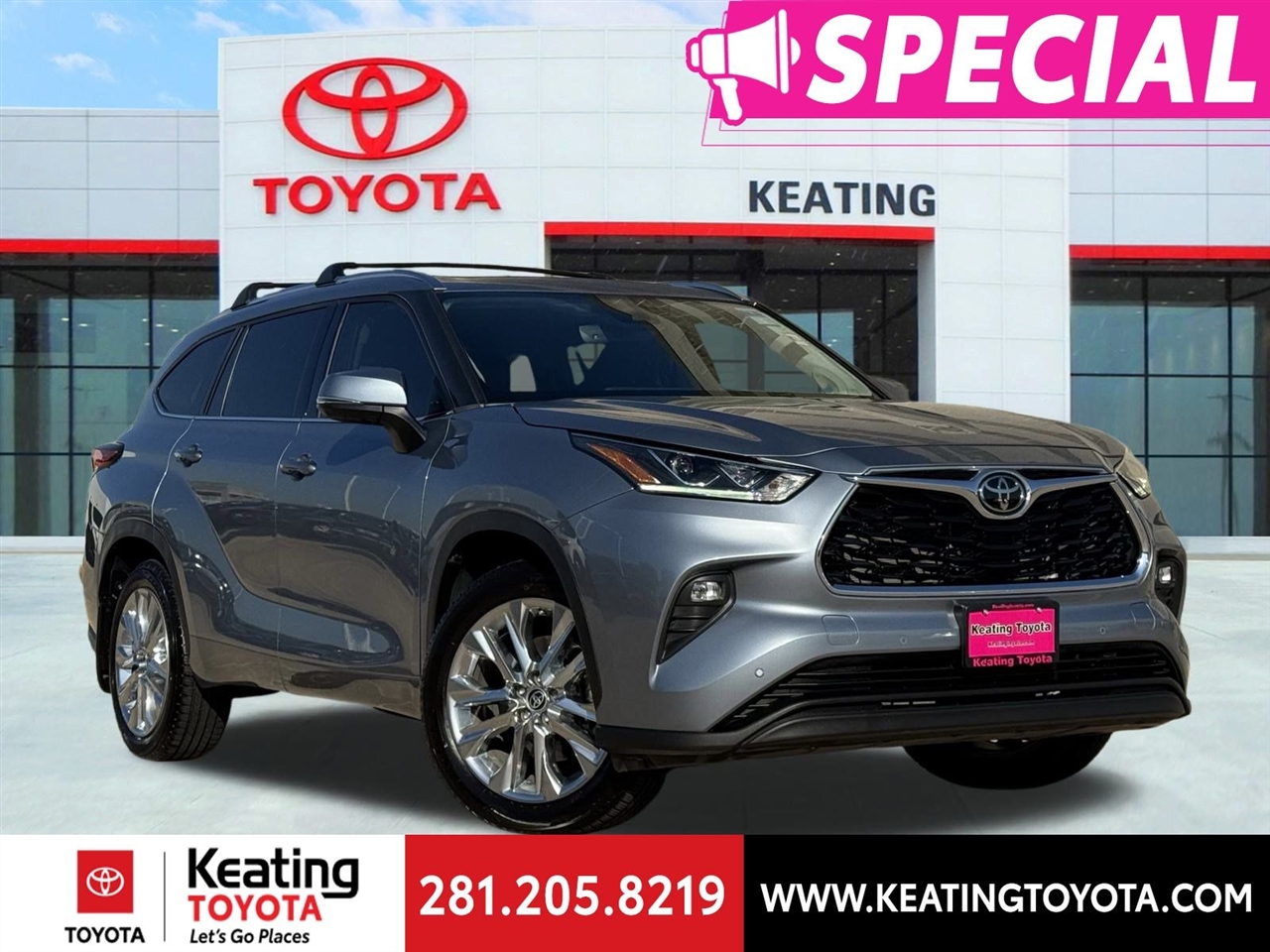 This 2023 Toyota Highlander LIMITED-L4T in Moon Dust with Black Leather offers a refined interior, modern connectivity, and capable mechanicals—come to Keating Toyota in Manvel to test drive it and experience the comfort, space, and tech in person
