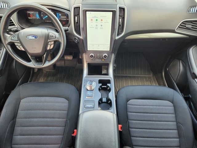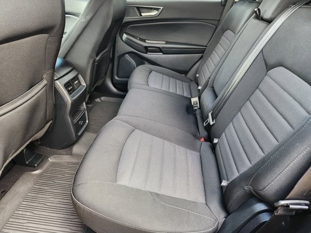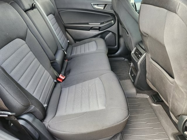 Edge SE AWD, 3.80 Axle Ratio, 4-Wheel Disc Brakes, 6 Speakers, ABS brakes, Air Conditioning, Alloy wheels, AM/FM radio: SiriusXM with 360L, Auto High-beam Headlights, Automatic temperature control, Black Appearance Package, Black Badges, Black Grille & Surround, Black Mirror Caps, Black Painted Lower Bodyside Molding, Black Painted Skid Plate, Black Roof-Rack Side Rails, Body-Color Front & Rear Bumpers, Brake assist, Bumpers: body-color, Cloth Bucket Seats, Compass, Delay-off headlights, Driver door bin, Driver vanity mirror, Dual front impact airbags, Dual front side impact airbags, Electronic Stability Control, Emergency communication system: SYNC 4 911 Assist, Equipment Group 100A, FordPass Connect, Four wheel independent suspension, Front & Rear Floor Liners w/Carpet Mats, Front anti-roll bar, Front Bucket Seats, Front Center Armrest w/Storage, Front dual zone A/C, Front reading lights, Fully automatic headlights, Illuminated entry, Knee airbag, Low tire pressure warning, Occupant sensing airbag, Outside temperature display, Overhead airbag, Overhead console, Panic alarm, Passenger door bin, Passenger vanity mirror, Power door mirrors, Power steering, Power windows, Radio: AM/FM Stereo/MP3 Capable, Rear anti-roll bar, Rear Parking Sensors, Rear reading lights, Rear seat center armrest, Rear window defroster, Rear window wiper, Remote keyless entry, SiriusXM w/360L, Speed control, Speed-Sensitive Wipers, Split folding rear seat, Spoiler, Steering wheel mounted audio controls, SYNC 4A w/Enhanced Voice Recognition, Tachometer, Telescoping steering wheel, Tilt steering wheel, Traction control, Trip computer, Variably intermittent wipers, Wheels: 18" Sparkle Silver-Painted Aluminum, Wheels: 19" High-Gloss Black Painted Aluminum.