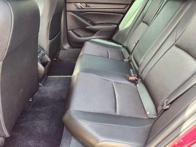 Accord Sport Black, 4-Wheel Disc Brakes, 8 Speakers, ABS brakes, Adaptive Cruise Control: Adaptive Cruise Control (ACC) with Low-Speed Follow, Air Conditioning, Alloy wheels, AM/FM radio, Apple CarPlay/Android Auto, Auto High-beam Headlights, Automatic temperature control, Brake assist, Bumpers: body-color, Delay-off headlights, Driver door bin, Driver vanity mirror, Dual front impact airbags, Dual front side impact airbags, Electronic Stability Control, Emergency communication system: HondaLink, Exterior Parking Camera Rear, Fabric w/Synthetic Leather Seat Trim, Forward collision: Collision Mitigation Braking System (CMBS) + FCW mitigation, Four wheel independent suspension, Front anti-roll bar, Front Bucket Seats, Front Center Armrest, Front dual zone A/C, Front fog lights, Front reading lights, Fully automatic headlights, Illuminated entry, Knee airbag, Lane Departure Warning System, Leather Shift Knob, Leather steering wheel, Low tire pressure warning, Occupant sensing airbag, Outside temperature display, Overhead airbag, Overhead console, Panic alarm, Passenger door bin, Passenger vanity mirror, Power door mirrors, Power driver seat, Power steering, Power windows, Radio data system, Radio: 180-Watt AM/FM Audio System, Rear anti-roll bar, Rear seat center armrest, Rear window defroster, Remote keyless entry, Security system, Speed control, Speed-sensing steering, Speed-Sensitive Wipers, Split folding rear seat, Spoiler, Steering wheel mounted audio controls, Tachometer, Telescoping steering wheel, Tilt steering wheel, Traction control, Trip computer, Variably intermittent wipers, Wheels: 19" Machine-Finished Alloy w/Black Inserts.