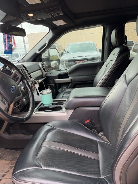 F-350SD Platinum 4WD, 10 Speakers, 110V/400W Outlet, 3.73 Axle Ratio, 4-Wheel Disc Brakes, 5th Wheel/Gooseneck Hitch Prep Package, ABS brakes, Adjustable pedals, Air Conditioning, Alloy wheels, AM/FM radio: SiriusXM, Auto High-beam Headlights, Auto-dimming Rear-View mirror, Automatic temperature control, Brake assist, Compass, Delay-off headlights, Driver door bin, Driver vanity mirror, Dual front impact airbags, Dual front side impact airbags, Electronic Stability Control, Emergency communication system: SYNC 3 911 Assist, Engine Block Heater, Exterior Parking Camera Rear, Flow-Through Console, Front anti-roll bar, Front Bucket Seats, Front Center Armrest, Front dual zone A/C, Front fog lights, Front reading lights, Fully automatic headlights, Heated door mirrors, Hill Descent Control, Illuminated entry, Leather steering wheel, Low tire pressure warning, Off-Road Specifically Tuned Shock Absorbers, Outside temperature display, Overhead airbag, Overhead console, Panic alarm, Passenger door bin, Passenger vanity mirror, Power door mirrors, Power driver seat, Power passenger seat, Power steering, Power windows, Radio data system, Radio: B&O System by Bang & Olufsen, Rear Parking Sensors, Rear reading lights, Rear seat center armrest, Rear step bumper, Rear window defroster, Remote keyless entry, Security system, SiriusXM Radio, Speed control, Split folding rear seat, Steering wheel mounted audio controls, SYNC 3 Communications & Entertainment System, Tachometer, Telescoping steering wheel, Tilt steering wheel, Traction control, Trip computer, Turn signal indicator mirrors, Twin Panel Power Moonroof, Unique FX4 Off-Road Box Decal, Upfitter Switches (6), Variably intermittent wipers.
