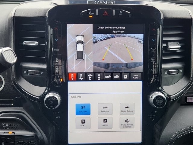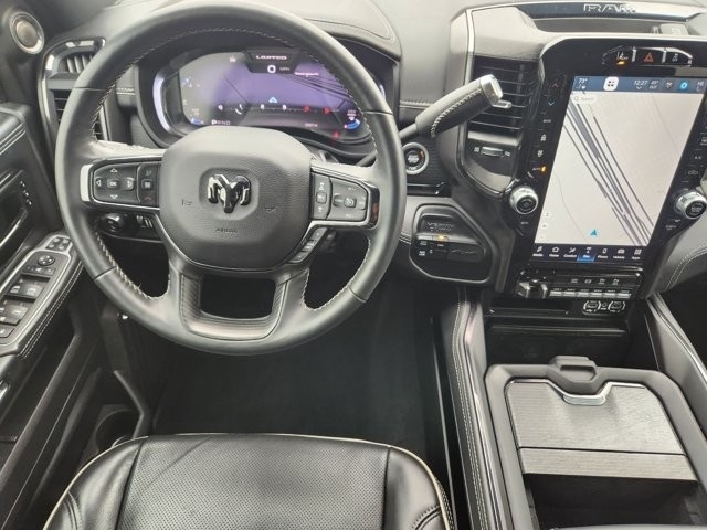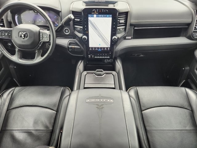 2500 Limited 10 Speakers, 12" Touchscreen Display, 17 Speaker harman/kardon Premium Sound, 3.73 Axle Ratio, 4 Adjustable Cargo Tie-Down Hooks, 4-Wheel Disc Brakes, 4G LTE Wi-Fi Hot Spot, 5th Wheel/Gooseneck Towing Prep Group, ABS brakes, Active Noise Control System, Adaptive Cruise Control w/Stop, Adaptive Steering System, Adjustable pedals, Air Conditioning, Alexa Built-In, Alloy wheels, AM/FM radio: SiriusXM with 360L, Anti-Spin Differential Rear Axle, Apple CarPlay, Apple CarPlay/Android Auto, Audio memory, Auto High-beam Headlights, Auto-dimming door mirrors, Auto-dimming Rear-View mirror, Automatic temperature control, Black Exterior Truck Badging, Black Headlamp Bezels, Black Limited Grille, Black RAM Head Tailgate Badge, Black Tail Lamp Bezels, Black Wheel Center Hub, Body Color Grille Surround, Bodyside moldings, Brake assist, Bumpers: body-color, Center Hub, Center Stop Lamp w/Cargo View Camera, Clearance Lamps, Compass, Connected Travel & Traffic Services, Connectivity - US/Canada, Dash Pass Thru Wire Circuits, Delay-off headlights, Digital Rearview Mirror, Disassociated Touchscreen Display, Driver door bin, Driver vanity mirror, Dual front impact airbags, Dual front side impact airbags, Electronic Stability Control, Electronically Controlled Throttle, For Details, Visit DriveUconnect.com, For More Info, Call 800-643-2112, Front anti-roll bar, Front Bucket Seats, Front Center Armrest w/Storage, Front dual zone A/C, Front fog lights, Front License Plate Bracket, Front reading lights, Full Speed Forward Collision Warning Plus, Fully automatic headlights, Garage door transmitter, Genuine wood console insert, Genuine wood dashboard insert, Genuine wood door panel insert, Global Telematics Box Module (TBM), Google Android Auto, GPS Antenna Input, GPS Navigation, HD Radio, Heated door mirrors, Heated front seats, Heated rear seats, Heated steering wheel, I/P Mounted Auxiliary Switches, Illuminated entry, Instrument Cluster Theme 8, Integrated Voice Command w/Bluetooth, Lane Keep Assist, Leather steering wheel, LED Bed Lighting, Limited Leather Bucket Seats, Limited Level 1 Equipment Group, Low tire pressure warning, Luxury Door Trim Panel (CTH), Manufacturer's Statement of Origin, Memory seat, MOPAR Spray In Bedliner, Navigation System, Night Edition, Occupant sensing airbag, Off-Road Information Pages, Outside temperature display, Overhead airbag, Overhead console, Panic alarm, ParkView Rear Back-Up Camera, Passenger door bin, Passenger vanity mirror, Pedal memory, Power Deployable Running Boards, Power door mirrors, Power driver seat, Power passenger seat, Power steering, Power Sunroof, Power windows, Quick Order Package 2HM Limited, Radio data system, Radio: Uconnect 5 Nav w/12.0" Display, Radio: Uconnect 5 Nav w/8.4" Display, Rain sensing wipers, RamBox Cargo Management System, RamBox Delete, Ramcharger Wireless Charging Pad, Rear anti-roll bar, Rear reading lights, Rear seat center armrest, Rear step bumper, Rear window defroster, Remote keyless entry, Security system, Selectable Tire Fill Alert, SiriusXM Radio Service, SiriusXM w/360L, Speed control, Split folding rear seat, Sport Performance Hood, Steering wheel mounted audio controls, Surround View Camera System, Tachometer, Tilt steering wheel, Tip Start, Traction control, Trailer Reverse Guidance, Trailer Tow Pages, Trip computer, Truck Bed Cargo Divider, Turn signal indicator mirrors, Variably intermittent wipers, Vendor Painted Cargo Box, Vendor Painted Cargo Box Tracking, Ventilated front seats, Voltmeter, Wheels: 20" x 8.0" Cast Aluminum Black, Wheels: 20" x 8.0" Diamond Cut Face Aluminum, Wheels: 20" x 8.0" Satin Carbon w/Chrome Inserts.
