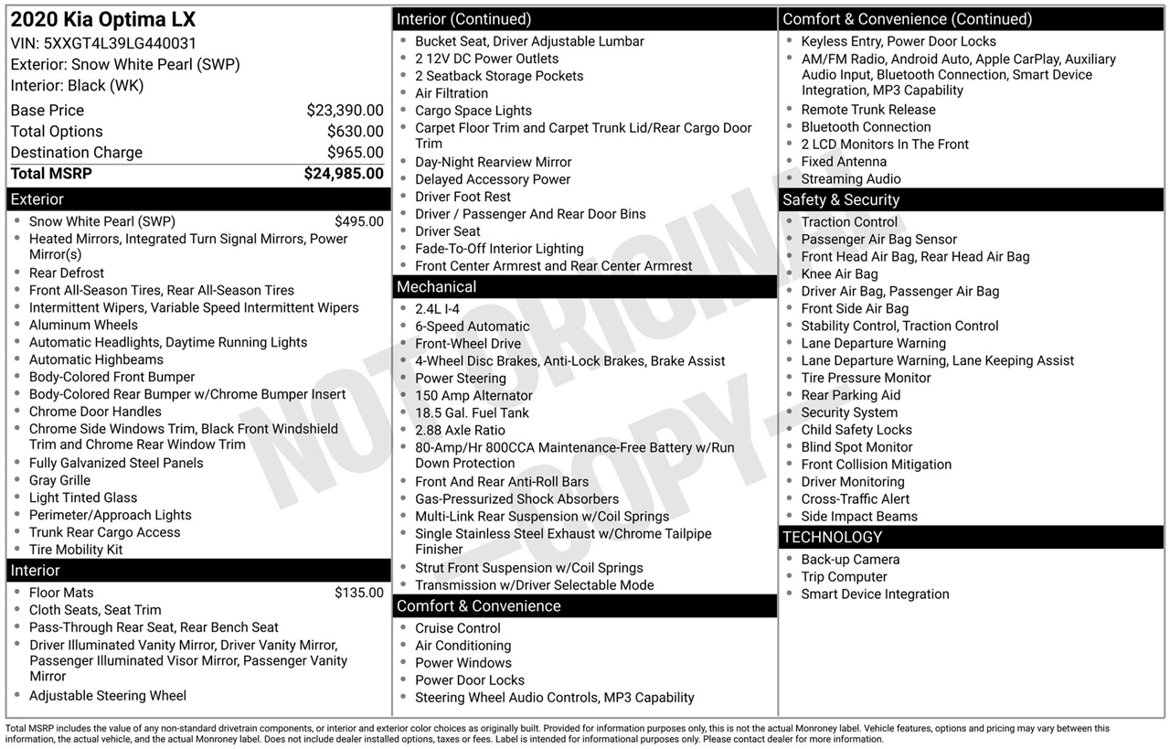 2020 Kia Optima LX