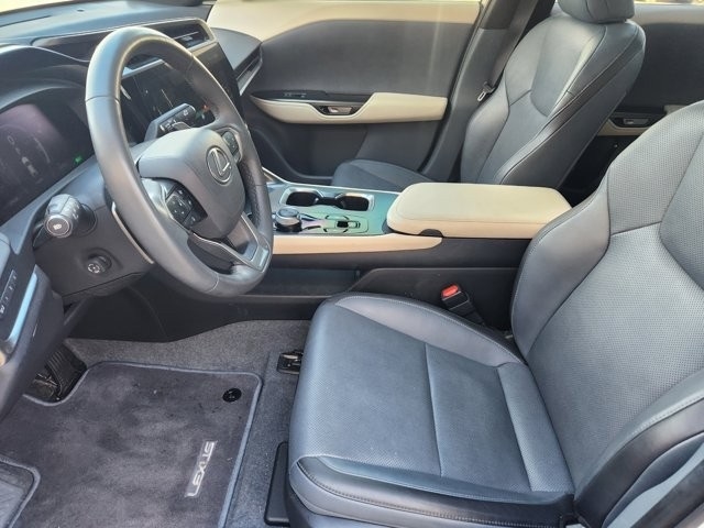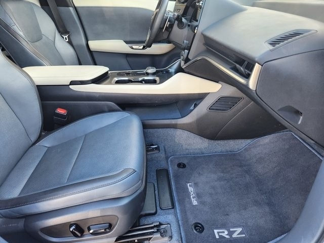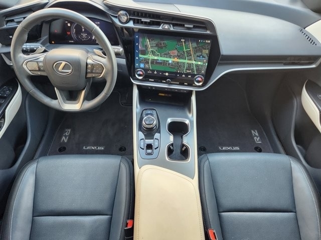 RZ 450e Premium 10 Speakers, 4-Wheel Disc Brakes, ABS brakes, Air Conditioning, Alloy wheels, AM/FM radio: SiriusXM, Apple CarPlay/Android Auto, Auto High-beam Headlights, Auto-dimming door mirrors, Auto-dimming Rear-View mirror, Automatic temperature control, Brake assist, Bumpers: body-color, Delay-off headlights, Driver door bin, Driver vanity mirror, Dual front impact airbags, Dual front side impact airbags, Electronic Stability Control, Emergency communication system: Safety Connect (10-year trial), Exterior Parking Camera Rear, Four wheel independent suspension, Front anti-roll bar, Front Bucket Seats, Front Center Armrest, Front dual zone A/C, Front reading lights, Fully automatic headlights, Heated door mirrors, Heated Front Bucket Seats, Heated front seats, Heated steering wheel, Illuminated entry, Knee airbag, Low tire pressure warning, Memory seat, Navigation System, NuLuxe Seat Trim, Occupant sensing airbag, Outside temperature display, Overhead airbag, Overhead console, Panic alarm, Passenger door bin, Passenger vanity mirror, Power door mirrors, Power driver seat, Power Liftgate, Power passenger seat, Power steering, Power windows, Radio data system, Radio: Lexus Interface, Rain sensing wipers, Rear anti-roll bar, Rear seat center armrest, Rear window defroster, Remote keyless entry, Security system, Speed control, Speed-sensing steering, Split folding rear seat, Spoiler, Steering wheel memory, Steering wheel mounted audio controls, Telescoping steering wheel, Tilt steering wheel, Traction control, Trip computer, Turn signal indicator mirrors, Variably intermittent wipers, Ventilated front seats.